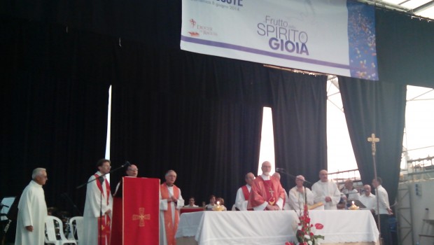E’ stato un pomeriggio vissuto all’insegna della gioia e della comunione fraterna quello che si è consumato al Teatro Tenda il giorno di Pentecoste, al grido di “Il frutto dello Spirito è la gioia” (gioia del Vangelo che riempie il cuore e la vita intera di coloro che si incontrano con Gesù), i gruppi, le associazioni ed i movimenti ecclesiali della diocesi si sono dati appuntamento per partecipare insieme a 12° appuntamento voluto come sempre dal vescovo  Paolo Urso. La partecipazione è stata strabocchevole sia per numero che per varietà di presenti: coppie con figli, anziani, famiglie intere, e tanti, tanti giovani linfa vitale del futuro di questa società che sta attraversando un momento storico davvero particolare. E sui loro volti si leggeva una sola aspirazione, essere testimoni della gioia (è questa infatti la “mission” primaria dei cristiani, gioia da non nascondere ma da far trasudare contagiando gli altri).