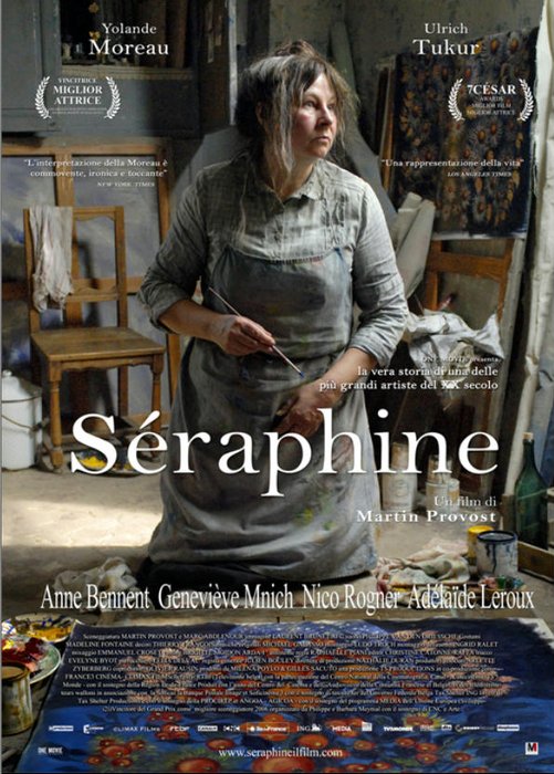 Senlis 1913. Una modestissima governante, che per una ricca famiglia del luogo svolge le più umilianti faccende domestiche, si rintana nella notte nella sua piccola mansarda, al lume di una lampada a petrolio, cantando salmi e inni spirituali. Ha preso del sangue in una macelleria, scavato la terra da un piccolo corso d’acqua, raccolto bacche dai cespugli del bosco. È una speziale? Una strega che usa quelle sostanze per i suoi riti magici? Niente di tutto ciò, Seraphine è una pittrice, autodidatta, che utilizza la terra, il sangue, le bacche per dipingere i suoi quadri. Ma la sua mente è destinata a smarrirsi, così la distanza con i suoi vicini del villaggio ad aumentare fino alle estreme conseguenze… La vera storia di un’antesignana dell’arte Naif, Seraphine De Senlis, che ha osato sperare fino alla follia: è così che l’arte si fa dramma e testimonianza di amore. Una provocazione alla “normalità” borghese senza più desiderio, alla cecità di chi ha rinchiuso la speranza nei luoghi comuni, negli orizzonti corti, in sguardi privi di stupore, in vite sempre più povere dell’essenziale.