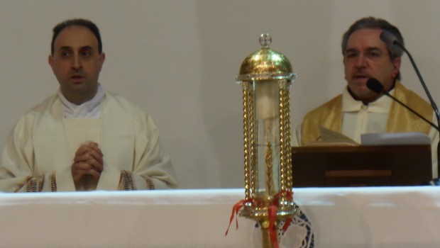 DSCN0198La chiesa di San Giuseppe Artigiano ha accolto con fede e tanta devozione la reliquia ( una tibia ) di Santa Teresa d’Avila , custodita in un’artistica teca ( proveniva dal concento carmelitano di Treppiedi – Catania dove è custodita ): l’iniziativa è stata del parroco don Salvatore Cannata che ha dato il benvenuto a p. Santo Sessa dei Carmelitani del convento del Carmine che ha accompagnato la teca. La reliquia è stata meta di tantissimi parrocchiani che hanno pregato ai piedi dell’altare su cui è stata riposta e che è rimasta sino al giorno dopo: l’evento ha avuto lo spunto dalla ricorrenza del V° centenario della nascita della Santa. Dopo la recita del Ss. Rosario e la concelebrazione della S. Messa assieme a p. Cannata e p. Corrado Garozzo, l’ospite ha intrattenuto i tanti fedeli in chiesa parlando con semplicità e profondità di pensiero della vita della Santa. Ci ha toccato un passaggio della dotta esposizione tratto dalla storia della vita di Santa Teresa: “…unico mio desiderio è incontrare il Signore per camminare finalmente insieme a lui senza veli”, le ultime sue parole poco prima del Transito.