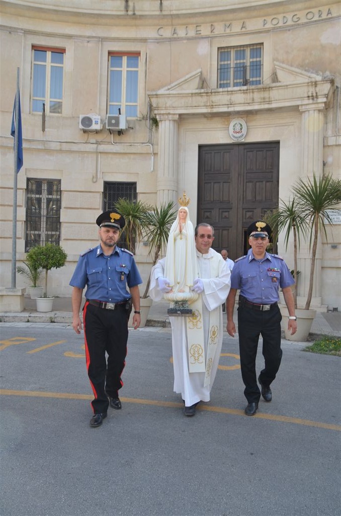 I carabinieri del comando provinciale hanno voluto esternare la propria testimonianza alla Madonnina di Fatima durante la sua “peregrinatio” nella diocesi di Ragusa promossa dalla Pastorale della salute e dal suo responsabile, consigliere nazionale dell’Apostolato mondiale di Fatima, don Giorgio Occhipinti.