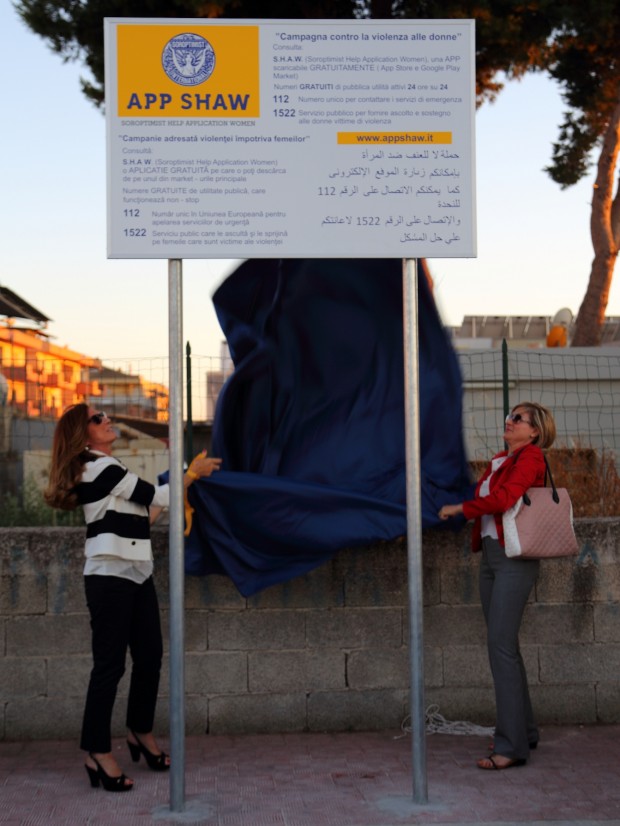 Alla presenza di numerose autorità, dei massimi rappresentanti delle istituzioni e delle forze dell’ordine cittadini, oltre alla dott.ssa Giovanna Licitra, in rappresentanza della Prefettura di Ragusa, la senatrice Venera Padua e l’on.le Giorgio Assenza, la presidente del Soroptimist Club di Vittoria, avv. Francesca Corbino, insieme alla presidente in coming dott.ssa Mirella Denaro, è stata scoperta la tabella informativa che il Soroptimist club di Vittoria ha fatto realizzare, interamente con le proprie risorse finanziarie, e fruibile dall’intera cittadinanza. Il sito, la pizza Nenni di Vittoria, è stato individuato come il luogo di “approdo” di tante donne, soprattutto romene, che arrivano con i pullman in cerca di una nuova vita.