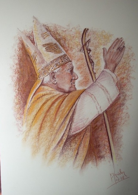 Anche i bambini parlano, non solo con la loro innocenza e lo sguardo puro, ma anche con la evocazione di un futuro migliore e meraviglioso. Ci sono anche i volti chiari e meditabondi dei santi contemporanei, a livello locale e a livello globale (madre Teresa di Calcutta e madre Candida della Eucarestia).