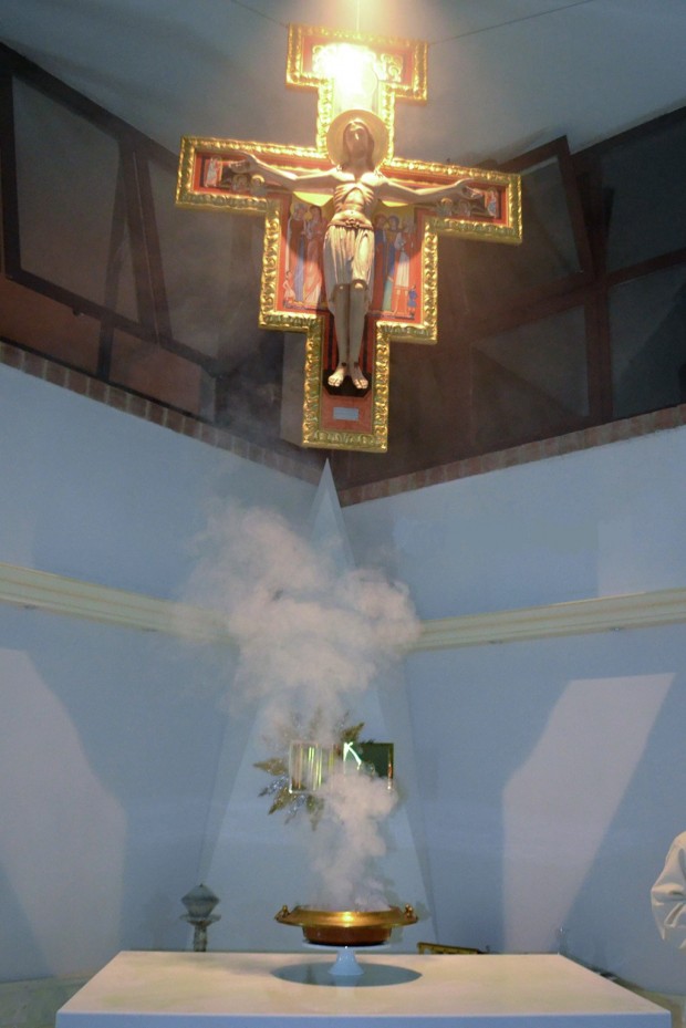 Giunti al portone d’ingresso il progettista, l’architetto Maria Amorelli, ha illustrato l’opera realizzata ed ha consegnato al vescovo la chiave del nuovo edificio che, a sua volta, ha dato al parroco della chiesa Giovanni Nigita. Al termine del rito d’ingresso, si è proceduto alla benedizione dell’acqua, al rito dell’unzione, dell’incensazione e dell’accensione delle candele poste sotto le dodici croci alle quattro porte laterali. A questo punto, Don Nigita e mons.  Urso hanno aperto le porte della chiesa alla comunità che ha partecipato con gioia e commozione alla celebrazione della consacrazione e dedicazione della parrocchia. Il rito è stato presieduto da monsignor Paolo Urso.