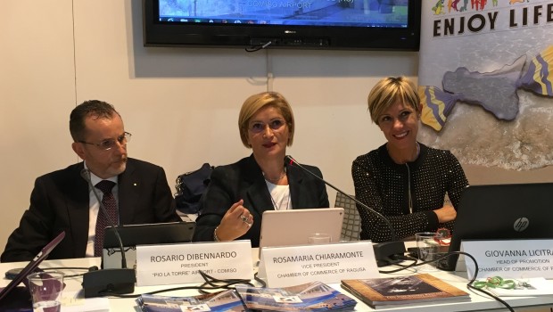 A tenere l’incontro con la stampa sono stati, anche a nome del Distretto Turistico degli Iblei, il Vice Presidente della Camera di Commercio di Ragusa, Rosamaria Chiaramonte, il Presidente dell’aeroporto Pio La Torre di Comiso, Rosario Dibennardo e Giovanna Licitra, dirigente dell’area promozione della Camera di Commercio di Ragusa. Durante la conferenza sono state altresì presentate le immagini del territorio, grazie agli audiovisivi realizzati dall’ente camerale in collaborazione con il Distretto Turistico degli Iblei.