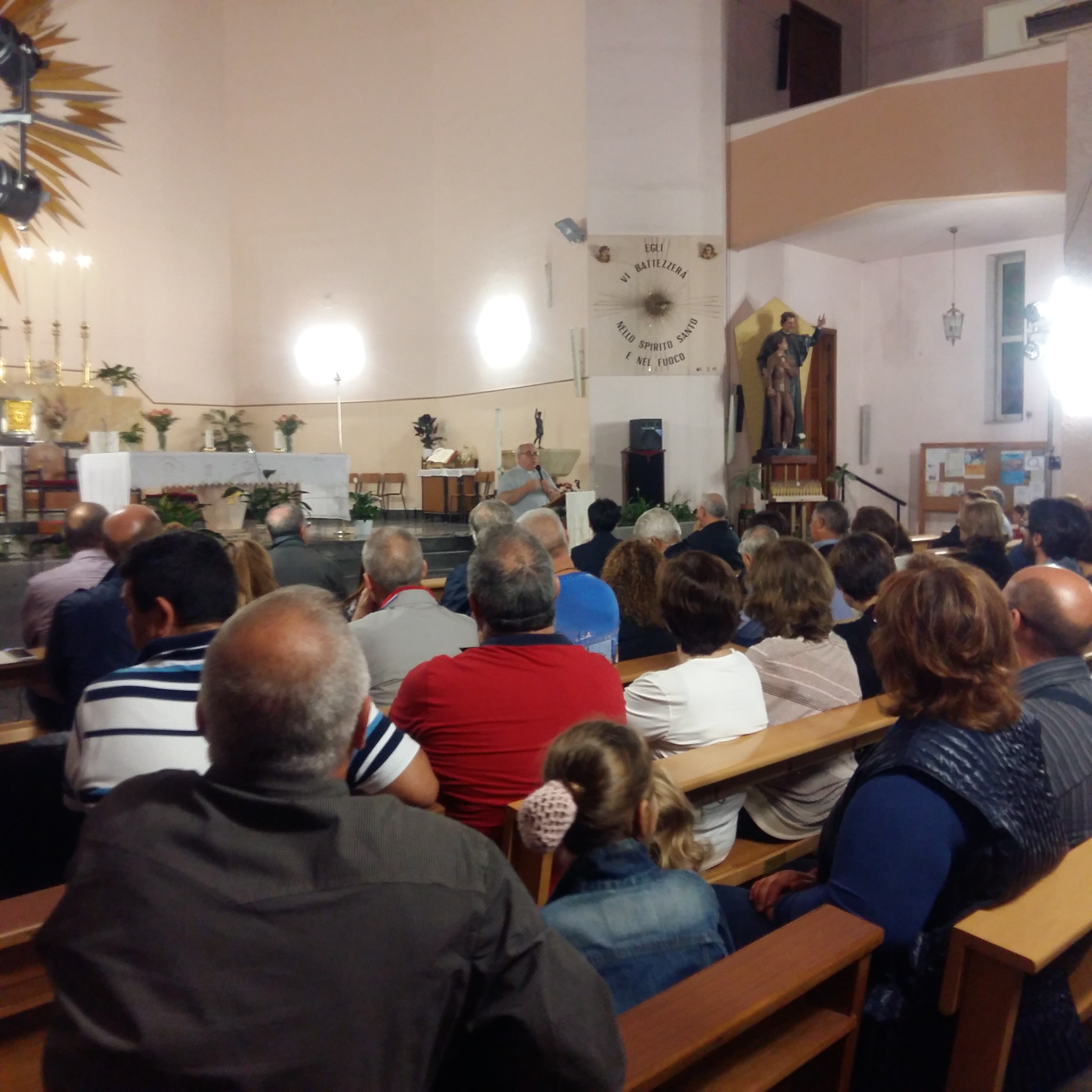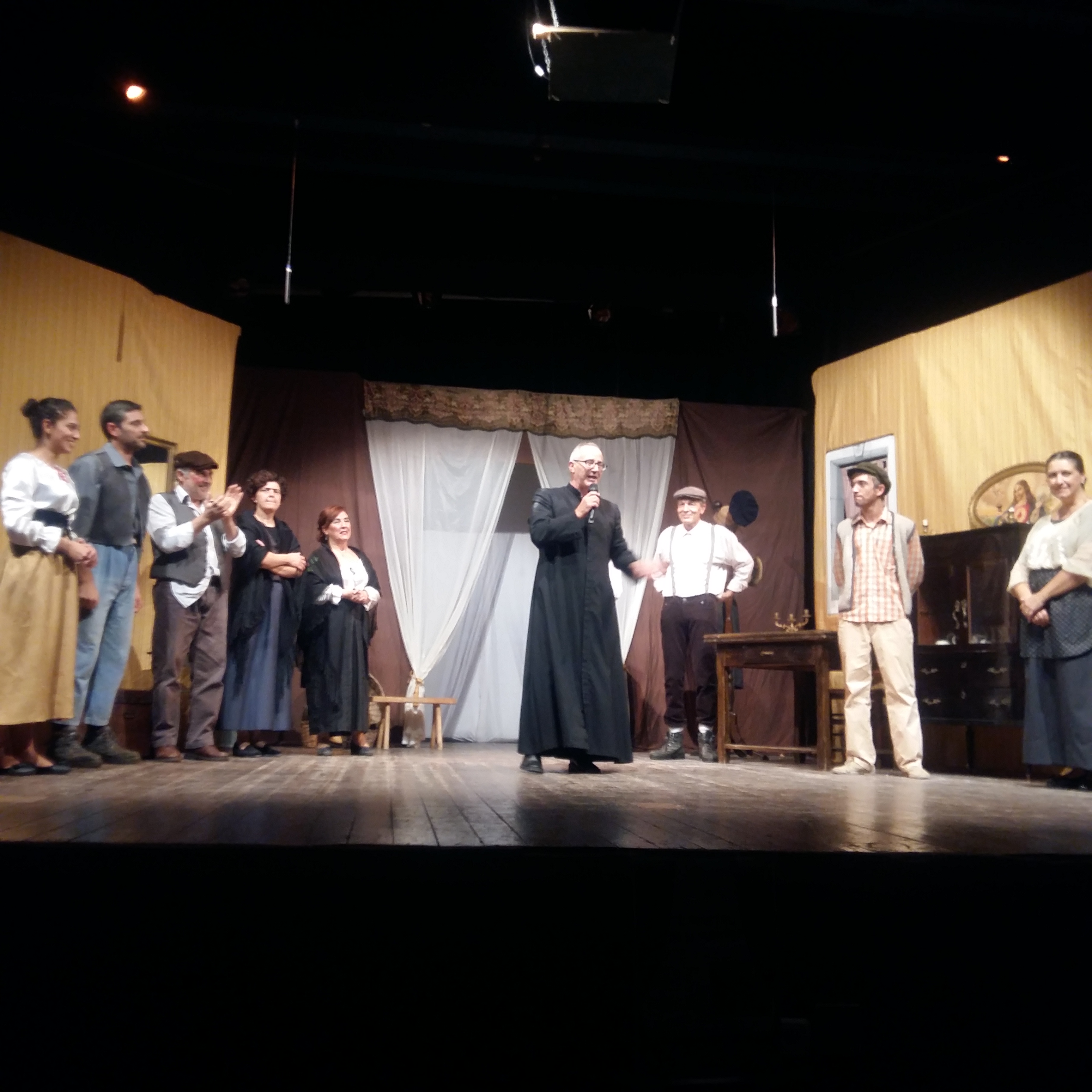 20151017_220747La seconda serata :” La Famiglia in allegria:” la compagnia dei “Picciuotti dell’ Oratorio”, composta da famiglie e giovani della Famiglia Salesiana di Ragusa ha intrattenuto per due ore il pubblico in un teatro stracolmo in ogni ordine di posti, con una commedia brillante, ricca di momenti esilaranti e apprezzata notevolmente dai presenti.   Il testo ha seminato, tra le battute, il senso di vivere l’ amore “ onesto”, sincero, la limpidezza delle relazioni tra le persone, il saper riconoscere i propri errori, chiedere scusa e rimediare.  A far da collante della storia, un parroco di campagna che si trova a dipanare la matassa aggrovigliata di un amore contrastato, con i suoi metodi poco ortodossi, e due coppie che giungono infine alla scelta consapevole del loro matrimonio. Semi di saggezza popolare che attraverso il linguaggio semplice ed immediato del teatro, vengono posti nell’ animo di chi assiste alla scena.