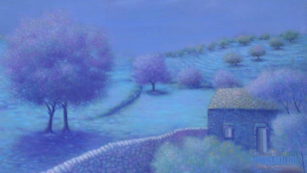 Lentamente – siamo intorno alla metà degli anni Ottanta – le file di palazzi in prospettiva cedono il passo a vicoli e a morbide colline: appartengono alla campagna di San Giacomo e alla vecchia Ragusa in cui l’artista, riconciliato con se stesso, può tornare idealmente ad abitare.