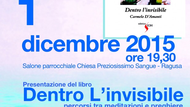 L’autore chiaramontano è adesso lieto di presentare il suo secondo volume, “Dentro L’invisibile” edito dalla casa editrice Sion, in un incontro che si terrà giorno 1 Dicembre 2015 alle ore 19:30 presso il Salone parrocchiale della chiesa del Preziosissimo Sangue di Ragusa. Interverranno oltre all’autore stesso Giovanni Nobile, Daniela Morando, Carmelo Impera, Carmelo Arezzo, accompagnati dalla musica sacra eseguita dalla pianista Antonella Rollo e dal flautista Giovanni Giaquinta a cui si unirà la voce di Loredana Toro.