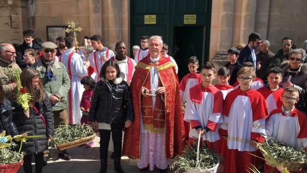 “E tutto ci ricorda che la vita cristiana, nel contesto di una società sempre più complessa e ricca di articolazioni, deve essere vissuta come un’offerta continua a Dio, ma anche come testimonianza da trasmettere agli uomini, perché Gesù che muore è un uomo che deve essere seguito, ascoltato e adorato per quello che è”: è il senso del messaggio lanciato dal parroco della Chiesa madre di San Giorgio, don Pietro Floridia, a Ragusa, dopo avere benedetto, nella splendida cornice del sagrato antistante la chiesa di San Giacomo apostolo, all’interno dei Giardini iblei, palme e ramoscelli d’ulivo portati dai fedeli e che gli stessi hanno poi condotto a casa quale simbolo di pace. Cerimonia molto partecipata con la presenza dei gruppi scout Fse di Ragusa 3.
