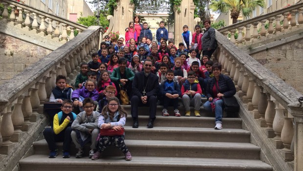 Ad accoglierli sulla scalinata del Vescovado , il Vescovo mons. Carmelo Cuttitta, che ha sciolto subito il ghiaccio mettendo i bambini a proprio agio e coinvolgendoli con domande e curiosità sul palazzo e su chi lo abita.