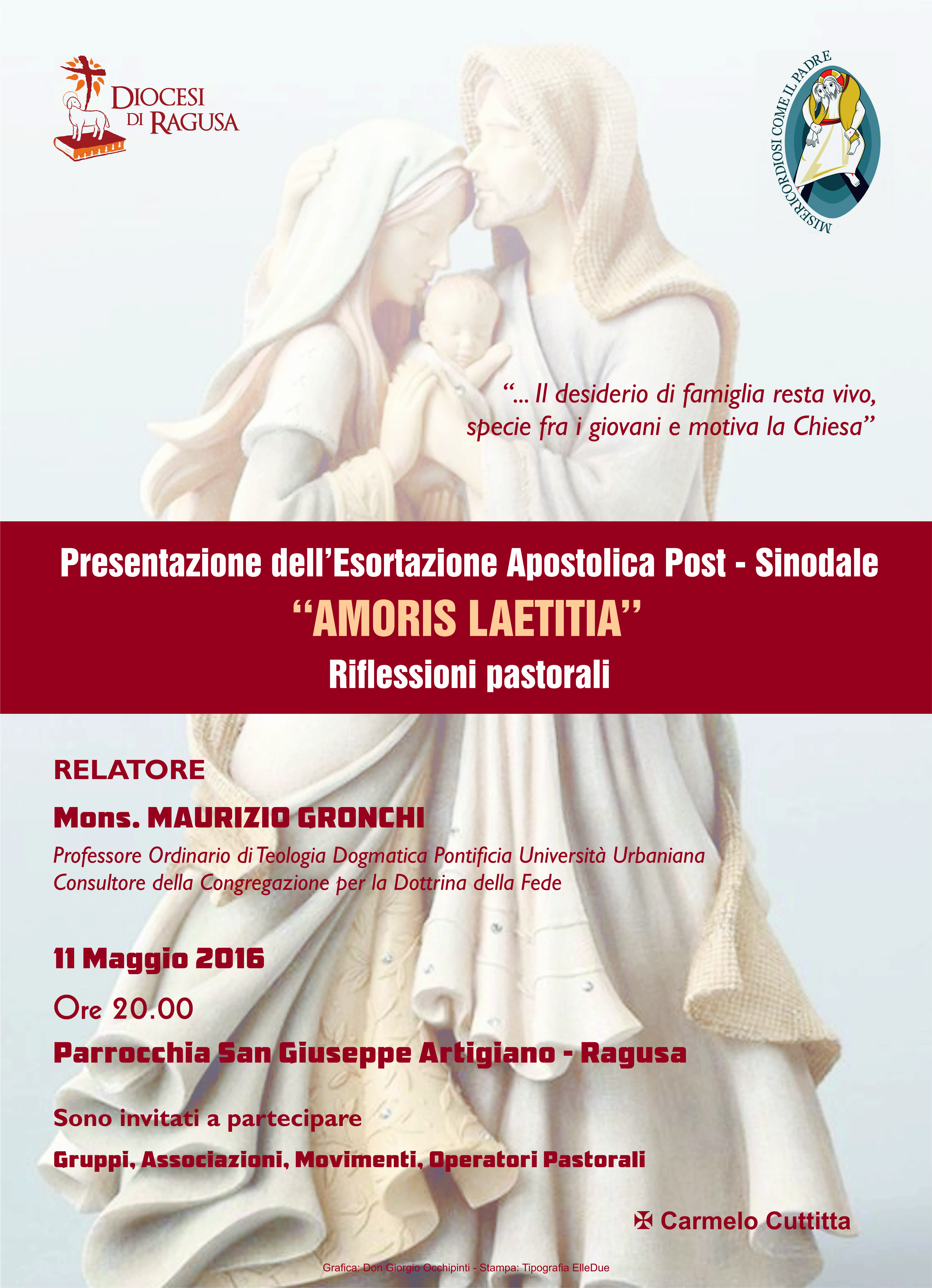La Diocesi di Ragusa ha invitato mercoledì 11 maggio alle ore 20,00 presso la chiesa San Giuseppe Artigiano di Ragusa, il professor Maurizio Gronchi che presenterà alla comunità diocesana questo importante documento.