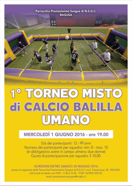 La Parrocchia Preziosissimo Sangue di N.S.G.C. di Ragusa ha organizzato il primo torneo misto di calcio balilla umano.