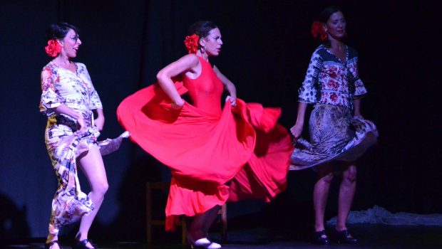 di ballo di 13 elementi con le prime ballerine Deborah Idelia Brancato, Floriana Patti, Pilar Escamilla accompagnate da quattro musicisti , la chitarra e il canto flamenco di Marcello Savona, le percussioni di Armando Fiore, la fisarmonica di Laura Mollica e il mezzosoprano Ermelinda Gatto. Uno spettacolo che ha visto un incredibile susseguirsi di luci, suoni, coreografie e diversi colori degli abiti e che ha espresso tante e diverse sensualità legate al flamenco. Immancabili il rosso e il nero, le frange e le lunghe gonne che hanno immediatamente portato gli spettatori all’atmosfera flamenca. Le scelte cromatiche hanno poi condotto gradualmente a ben immaginarsi i diversi quadri dell’Opera Carmen. A emergere davvero sul palcoscenico è stato il suono sempre all’unisono dei tacchi ai piedi delle danzatrici. Un’impressionante sincronia tale da essere