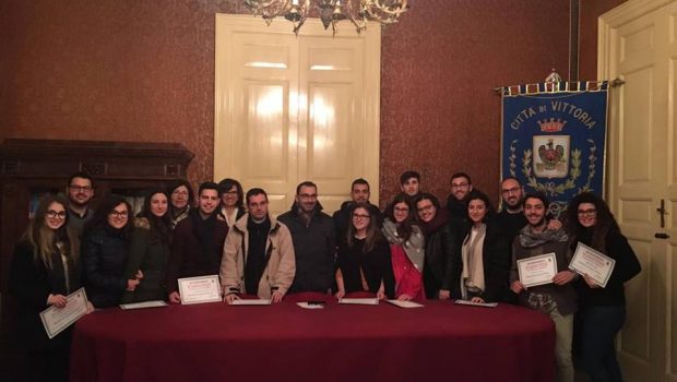 Nella serata di giovedì 19 gennaio 2017 i giovani del coro “Misericordes” di Vittoria hanno varcato la soglia di Palazzo Iacono, accolti nella sala degli specchi dal Vicesindaco dott. Andrea La Rosa e dal consigliere Stefano Frasca, vicepresidente della Commissione Cultura. Nel suo saluto Maria Grazia Di Bona, coordinatrice del coro, ha presentato il gruppo canoro, sorto in seguito al terremoto del centro Italia del 24 agosto per raccogliere fondi da destinare in beneficenza ai terremotati. Due i concerti effettuati: il 1 novembre nella chiesa di S. Maria Maddalena ed il secondo, a gran richiesta nella chiesa delle Grazie il 4 dicembre. Il coro si è esibito anche il 5 gennaio scorso presso il carcere di Ragusa in un commovente e sentitissimo concerto, dopo il quale è stato ricevuto in Vescovado dal Vescovo della diocesi, mons. Carmelo Cuttitta. Don Salvatore Mallemi, assistente spirituale della corale, ha ringraziato gli amministratori per aver ricevuto nel palazzo di città la corale giovanile, ricordando come essa rappresenta il volto “bello” e solidale della città di Vittoria. Il coro Misericordes è formato da giovani che intendono essere cristiani allargano il loro cuore anche alle necessità di chi ha più bisogno. Essendo un coro di beneficenza non ha come scopo precipuo l’impegno artistico ma vuole mettere la musica e la preghiera a servizio della carità. Esso costituisce uno dei segni di speranza che sono sorti nella città di Vittoria, troppo spesso nominata purtroppo per eventi negativi. Il Vicesindaco dott. Andrea La Rosa si è detto lieto di accogliere nella casa comunale il coro, e ha portato i saluti dell’amministrazione comunale e del Sindaco, che si è reso presente per un breve saluto. Nel loro intervento il vicesindaco e il consigliere Frasca hanno affermato che il coro “Misericordes” è una delle molteplici esperienze di solidarietà fiorite a Vittoria e ha sottolineato quanto bene facciano alla città di Vittoria e ai vittoriesi queste piccole iniziative di solidarietà. Il vicesindaco a nome dell’Amministrazione Comunale si è dichiarato inoltre favorevole a sostenere le future iniziative della corale. Al termine dell’incontro il vicesindaco ha consegnato ai membri della corale un attestato di benemerenza per l’opera di solidarietà svolta. Quindi i presenti hanno posato per l’immancabile foto ricordo.