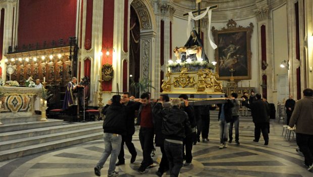 I riti della Settimana Santa a Ragusa Ibla sono, però, preceduti da un altro evento religioso ricco di suggestione e carico di intensità spirituale. Il 7 aprile, infatti, ultimo venerdì di Quaresima, sarà riproposto il “Venerdì dell’Addolorata”. La chiesa di San Giacomo Apostolo, all’interno dei Giardini iblei, ospiterà i fedeli, a partire dalle 15, per la recita del Rosario mentre, a seguire, è prevista la “Settina dell’Addolorata”. Sarà l’occasione, prima della santa messa solenne fissata per le 17, per la consegna emozionante di sentiti ex voto da parte di ciascun fedele. Anche in questo caso è una tradizione che affonda le proprie radici nei secoli scorsi e che, ancora oggi, viene ripetuta forte del fervore religioso che anima i devoti. Sempre venerdì 7 aprile, inoltre, alle 20, lungo il corso XXV Aprile, si terrà la via Crucis interparrocchiale, altro momento che coinvolge tutti i fedeli del quartiere barocco e non solo. La Settimana Santa vera e propria, a Ragusa Ibla, con il sostegno del Comune, prenderà il via il 9 aprile con la Domenica delle Palme. Alle 10,30, ai Giardini iblei, ci sarà la benedizione delle palme e la processione verso la Chiesa Madre di San Giorgio dove si terrà la santa messa solenne. Alle 12, è in programma la funzione religiosa nella chiesa di San Tommaso. Poi, nel pomeriggio, sempre al Duomo, questi gli altri appuntamenti programmati: alle 17 solenne esposizione del Santissimo Sacramento; alle 17,30 fervorino eucaristico della confraternita dell’Addolorata; alle 18,15 la santa messa (in contemporanea funzione religiosa alla chiesa della Maddalena); alle 19,30 fervorino eucaristico della confraternita della Maddalena; alle 20,30 fervorino eucaristico della confraternita del Santissimo Rosario. Gli orari di inizio delle tre processioni, sempre nella giornata di domenica, sono i seguenti: il simulacro dell’Addolorata dalla chiesa dell’Idria a partire dalle 16,45; il simulacro della Maddalena, dalla chiesa omonima, dalle 18,45; il Cristo alla colonna, dalla chiesa dell’Annunziata, dalle 19,15. L’adorazione eucaristica delle “Quarantore” sarà guidata dai gruppi delle parrocchie di Ragusa Ibla.