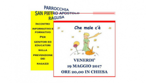 L'incontro sarà incentrato sulla prevenzione dei ragazzi e si svolgerà presso la Parrocchia S. Pietro Apostolo a Ragusa