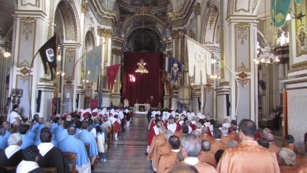 È accaduto a Ispica, Diocesi di Noto. E la notizia ha suscitato vivo scalpore: da una parte i fazzoletti azzurri della confraternita dei “Nunziatari”, ovvero i fedeli del Cristo alla Croce che si venera presso la chiesa della Madonna dell’Annunziata, e dall’altra i fazzoletti rossi della confraternita dei “Cavari”, ovvero i fedeli del Cristo flagellato alla Colonna, che si venera presso la chiesa di Santa Maria Maggiore.