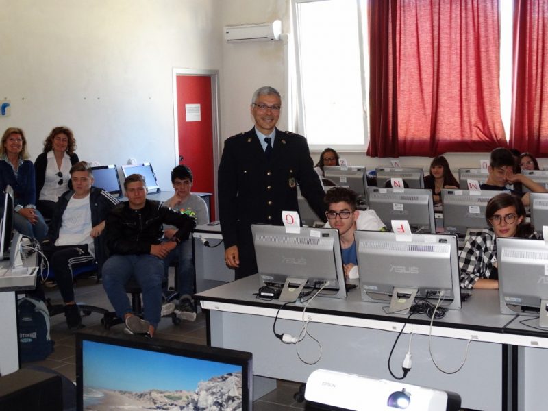 Contemporaneamente, nella stessa giornata, gli alunni del biennio hanno avuto modo di apprezzare le attività formative proposte e curate nei diversi laboratori didattici, dai rappresentanti delle varie forze dell’ordine. Hanno dato il proprio significativo contributo il Comm. Capo della Polizia di Stato Ciavola (Dirigente della squadra mobile di Ragusa), il Cap. Spoti (Comandante della Compagnia dei Carabinieri di Ragusa), il Dott. Falconieri (Comandante della Polizia Provinciale di Ragusa), il Dott. G. Puglisi (Comandante della Polizia municipale di Ragusa), l’Ispettore Sup. Cappello (Corpo Forestale Regione Sicilia di Ragusa). Il dibattito sinergico tra gli alunni e le rappresentanze delle forze dell’ordine è stato imperniato su tematiche di significativo interesse per i giovani quali, droghe, alcol, violenze, bullismo e cyber bullismo, incidenti del sabato sera, rispetto dell’ambiente.