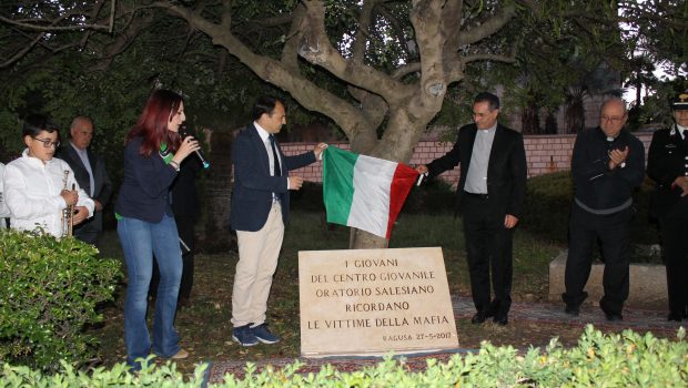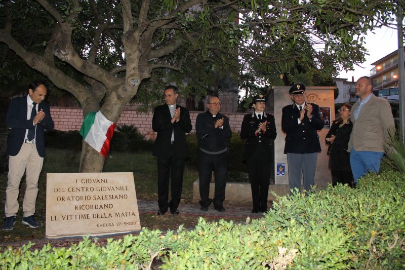 La cerimonia è proseguita con la scopertura, da parte del vescovo e dal presidente Tringali, di una lapide ove è incisa questa iscrizione: “I GIOVANI DEL CENTRO GIOVANILE ORATORIO SALESIANO RICORDANO LE VITTIME DELLA MAFIA – RAGUSA 27-05-2017”. Poi il momento è proseguito con le note del “Silenzio”, intonate da due giovani trombettisti dell’oratorio e un minuto di raccoglimento in memoria delle vittime innocenti della mafia. La conclusione è stata con la liberazione e lancio di sei palloncini tricolore a significare che alla libertà corrisponde la legalità.