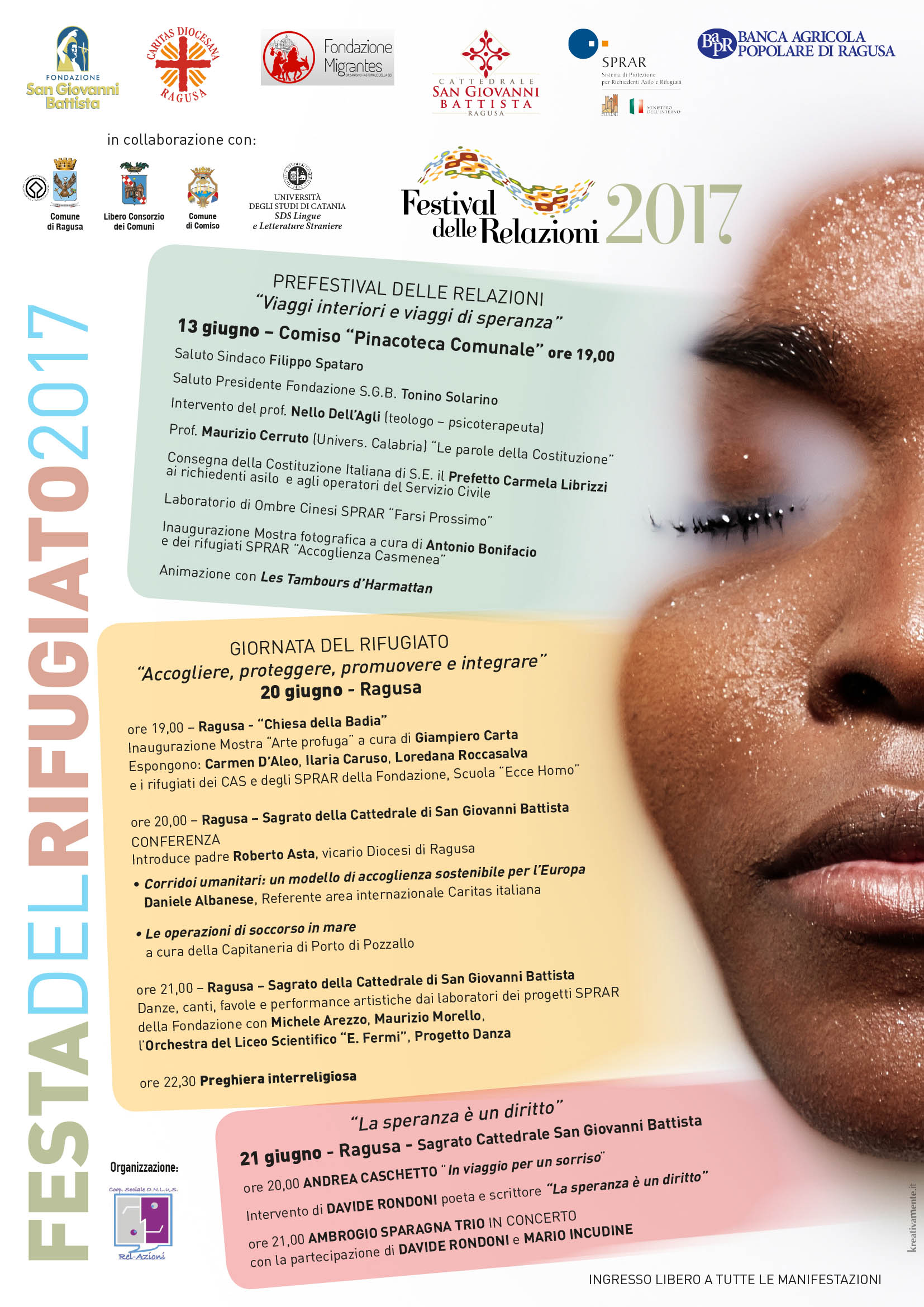 Al termine danze, canti, teatro e performance artistiche dai laboratori dei progetti Sprar di Ragusa e Comiso a cura di Progetto Danza, Michele Arezzo, Maurizio Morello e l’Orchestra del Liceo Scientifico “Fermi” di Ragusa. Concluderà la serata un momento di preghiera interreligiosa.