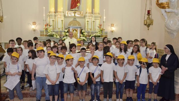 La cerimonia si è conclusa con un momento davvero particolare: i bambini si sono raccolti attorno all’altare prendendosi per mano per intonare il canto “Vivere a colori” di Alessandra Amoroso, un invito a vivere la bellezza della vita in tutte le fasce d’età con le loro peculiarità.