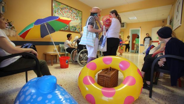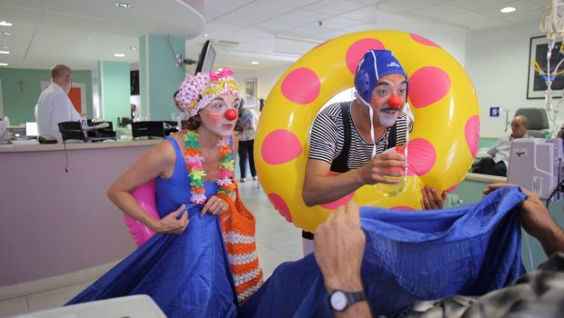 Lo stesso che ha voluto lanciare con la divertente avventura di “Mare dentro”. Portare il mare all’interno del reparto: i clown dottori sono riusciti in questa impresa davvero surreale, ma forse proprio per questa meravigliosamente coinvolgente e, armati di pinne, costumi da bagno, salvagente, occhiali da sole, ma c’erano anche ombrelloni, maschere, persino la sabbia e l’immancabile acqua, hanno simpaticamente invaso i locali del reparto. Costumi un po’ retrò e la musica anni ’60 hanno fatto il resto, riuscendo a creare un’atmosfera degna del migliore set cinematografico, dapprima in sala d’attesa e poi nel reparto.
