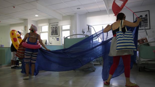 Quel legame che si è creato più tardi anche nel reparto di Pediatria, dove l’associazione opera da diverso tempo. Anche qui i clown dottori hanno allestito il divertente scenario balneare, coinvolgendo i piccoli pazienti, i loro genitori e gli stessi operatori sanitari. Un’ondata di freschezza, di energia, di gioia ha invaso l’atmosfera, con un telo blu disteso lungo la corsia che ha trascinato con sé, in questo magico fondale marino, tutti i bambini presenti, le loro mamme e i loro papà.