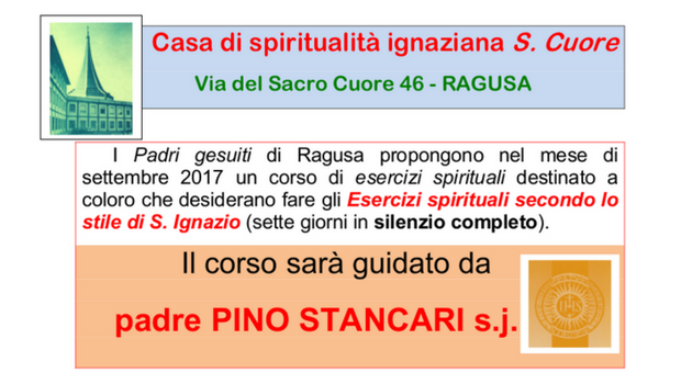 I Padri gesuiti di Ragusa propongono nel mese di settembre 2017 un corso di esercizi spirituali destinato a coloro che desiderano fare gli Esercizi spirituali secondo lo stile di S. Ignazio (sette giorni in silenzio completo).