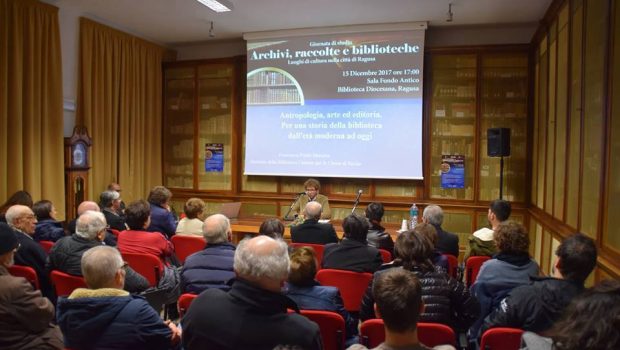 Con questa frase esplicativa si potrebbe racchiudere l’importante funzione di biblioteche, raccolte ed archivi, centro della giornata di studio tenutasi lo scorso 15 dicembre presso la Sala Fondo Antico della Biblioteca Diocesana di Ragusa, dal titolo “Archivi, raccolte e biblioteche, luoghi di cultura nella città di Ragusa”. L’iniziativa è stata promossa dalla Biblioteca Diocesana Mons. Francesco Pennisi e sponsorizzata da Konza e Savini. Dopo i saluti istituzionali da parte del Vicario Generale, padre Roberto Asta, che ha portato il saluto del Vescovo Carmelo, nonchè quelli del direttore della Biblioteca Diocesana, Don Giuseppe Di Corrado, della Dott.ssa Rosa Corallo della Soprintendenza BB. CC.AA. di Ragusa e dell’Assessore al Turismo del Comune di Ragusa, Nella Disca, si sono susseguiti gli interventi della prof.ssa Francesca Paola Massara, Direttrice della Biblioteca della Facoltà Teologica di Sicilia, del dott. Francesco Failla, Vicepresidente Nazionale dell’Associazione Bibliotecari Ecclesiastici Italiani, di Don Giuseppe Antoci, Direttore dell’Archivio Storico Diocesano di Ragusa, del dott. Giovanni Calabrese, Direttore dell’Archivio di Stato di Ragusa, e della prof.ssa Chiara Ottaviano dell’Archivio Ibleo. L’incontro è stato moderato dal dott. Stefano Vaccaro.