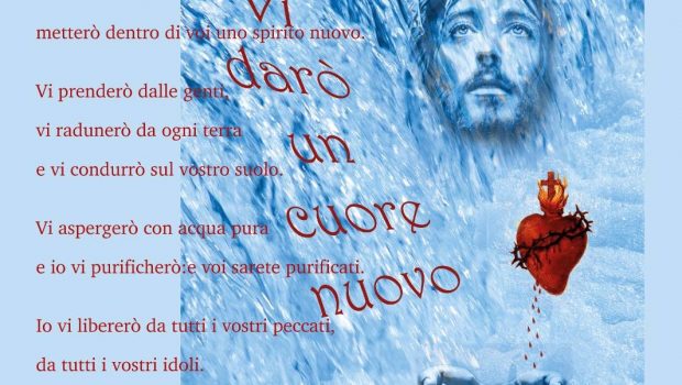 “Uno spazio” ci spiega l’artista, “dove attraverso la testimonianza poetica – sonora – vocale – gestuale – visiva possiamo ascoltarci interiormente e condividere preghiera, meditazione, contemplazione. Preghiera come richiesta di pura benedizione al Padre Santo; meditazione come concentrazione sul lavoro che la vita ci richiede; contemplazione come ascolto assoluto della Sua Volontà per fonderci in Lui, nel Suo Tutto. Uno. Vi darò un cuore nuovo è adatto anche a persone che stanno alla ricerca e non riescono ad Ascoltare; adatto ai ricercatori distratti, ed anche a chi vive l’ardore in Cristo Gesù. E’ richiesto, semplicemente, un silenzioso ascolto ai testi poetici, di San Giovanni della Croce, Santa Teresa d’Avila, Santa Hildegarda, San Francesco.”