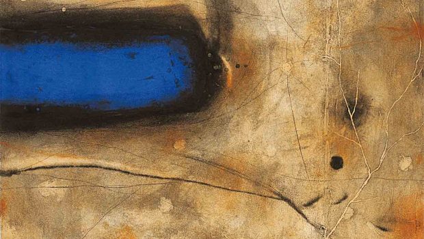 La ciotola semplice come “contenitore che attraversa la storia e che ci porta alla preistoria, a condizioni primordiali in cui l’uomo comincia a differenziarsi come specie – spiega il critico Nifosì – ed è per questo che la ciotola la rende rossa, il colore della vita, del sangue, di tutto ciò che è energia”. Ed ancora la foglia, i rami, il blu intenso che interviene sul foglio contornato di nero. Dal mondo vegetale si aggiunge un fiore, la calle di colore bianco, a forma di calice con dentro un robusto pistillo ad individuare il femminile e il maschile.