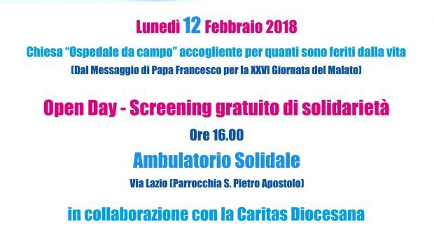 12 febbraio 2018 – Ambulatorio Solidale (Locali Parrocchia San Pietro – Via Lazio) Ragusa, in collaborazione con la Caritas Diocesana