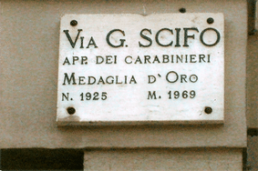 L’appuntato Scifo non esita prontamente ad affrontare l’uomo ma rimane ferito mortalmente. Il gesto, immediato, dell’appuntato servirà a salvare le vite di altre persone: per questo eroico sacrificio viene insignito con la Medaglia d’oro al valor civile con la seguente motivazione: