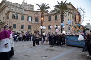 Qui il parroco e il direttore dell’ufficio diocesano per la Pastorale della salute, don Giorgio Occhipinti, hanno dato vita, con la collaborazione della cappellania ospedaliera, a un momento di preghiera rivolto a tutti gli ammalati, allo scopo di dare conforto spirituale, i devoti hanno lasciato andare in cielo alcuni palloncini colorati.