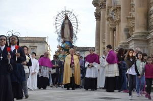 Dopo l’uscita dalla Cattedrale, il corteo, guidato dal parroco don Giuseppe Burrafato e caratterizzato dalla presenza dei fedeli che con i ceri accesi hanno preceduto il passaggio del simulacro, ha animato le vie del centro storico superiore di Ragusa.