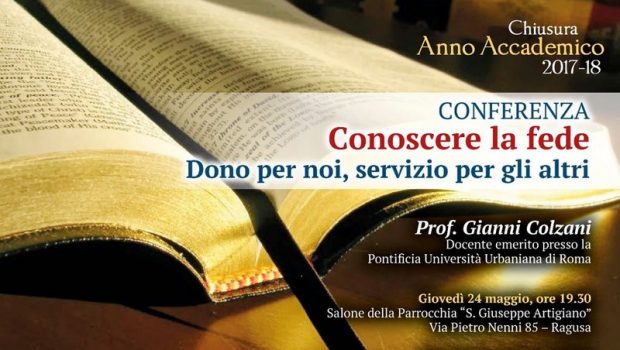 Si chiude in grande stile l’intenso anno accademico della Scuola Teologica di Base della Diocesi di Ragusa con una conferenza tenuta dal noto teologo don Gianni Colzani. “Conoscere la fede: dono per noi, servizio per gli altri“, questo il titolo del seminario conclusivo. Le sfide che attendono oggi i laici sono tante e Papa Francesco non manca di ricordarle, sulla scia di quanto tracciato già dal Concilio Vaticano II. Una sfida ineludibile è oggi quella della formazione. Per questo il teologo milanese di fama internazionale, docente emerito di teologia delle missioni, illustrerà l’importanza dello studio della teologia ai nostri giorni, posti di fronte ad una società lontana da Dio e ad una comunità ecclesiale chiamata ad essere “contemplativa nell’azione”.