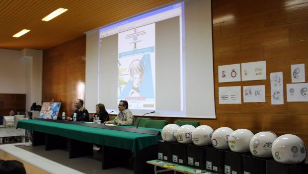 Gli studenti del triennio del Liceo Artistico sono stati coinvolti attraverso la didattica laboratoriale nella realizzazione di gadget (magliette), di annunci promozionali e di manifesti di sensibilizzazione sulla sicurezza stradale e in particolare sull’uso del casco.