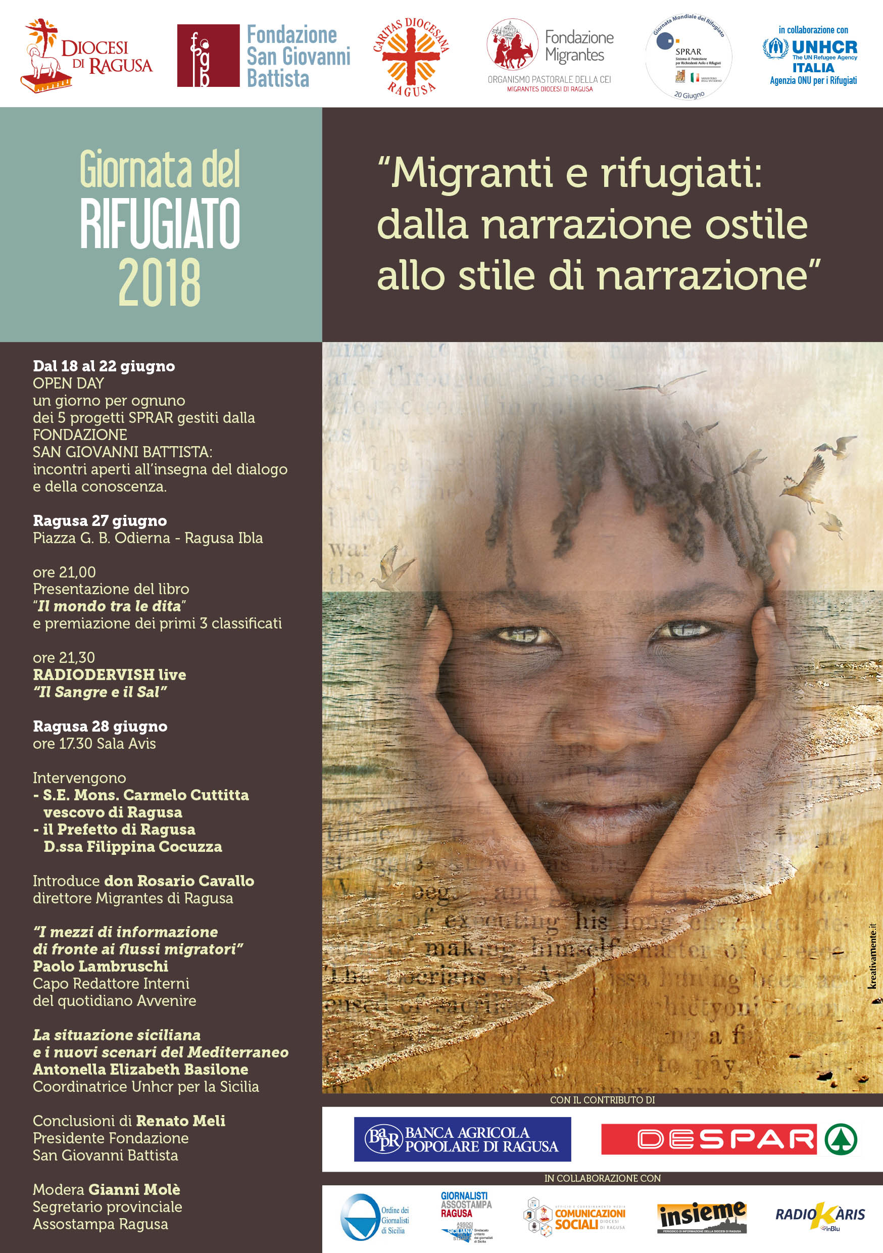 “Migranti e rifugiati: dalla narrazione ostile allo stile di narrazione” è il tema che farà da filo conduttore alle varie iniziative promosse da Fondazione San Giovanni Battista, Caritas Ragusa e Migrantes per celebrare ancora una volta la Giornata mondiale del Rifugiato in collaborazione con Unhcr. Tanti i momenti che animeranno le giornate dal 18 al 28 giugno. Le manifestazioni vivranno uno dei loro momenti più significativi, infatti, con il concerto del gruppo musicale dei Radiodervish che presenteranno a Ragusa, in anteprima nazionale, il nuovo album “Il Sangre e il Sal”. Il 27 giugno piazza Hodierna a Ragusa Ibla si colorerà così dei suoni e delle voci del gruppo italo palestinese, da vent’anni voce della multiculturalità e del dialogo. Prima del concerto verrà presentata la pubblicazione “Il mondo tra le dita”, frutto di un concorso letterario rivolto a tutti gli Sprar di Italia e del progetto di alternanza scuola lavoro realizzato dalla Fondazione San Giovanni Battista con l’Istituto “Galileo Ferraris”.