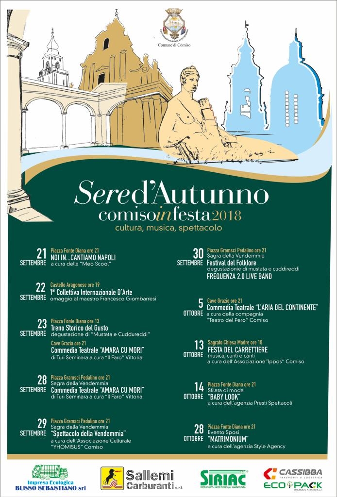 La nuova manifestazione di cultura, musica e spettacolo “Sere d’Autunno – Comisoinfesta 2018” ha preso il via nella cittadina casmenea, l’organizzazione è curata dall’Amministrazione comunale.