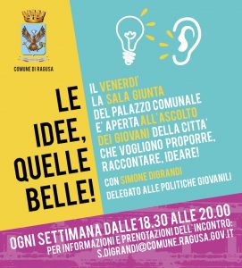 Le istituzioni si aprono all’ascolto dei giovani, sarà un punto d’incontro settimanale per un confronto di idee, proposte, segnalazioni, necessità, visione della città, per progettare iniziative concrete per Ragusa.