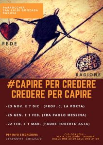 Venerdì 23 novembre avrà inizio una serie di incontri formativi sul tema “Capire per credere, credere per capire”. Gli incontri si terranno secondo il seguente calendario: