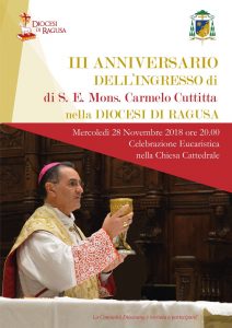 Con una solenne celebrazione in cattedrale la Chiesa di Ragusa, si stringerà attorno a mons. Carmelo Cuttitta che mercoledì 28 novembre celebrerà il terzo anniversario del suo ingresso nella nostra diocesi. La celebrazione eucaristica si terrà alle ore 20.00, tutta la comunità diocesana è invitata a partecipare.