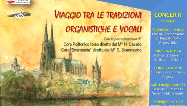 I “Percorsi di musica sacra” sono stati pensati per riproporre in forma concertistica le varie forme musicali che sono state attuate nella storia della liturgia cristiana europea. In continuità con quanto proposto lo scorso anno, l’organo rappresenterà il fulcro di tale riproposizione, ma l’offerta musicale si è arricchita quest’anno dalla presenza del Coro Polifonico Ibleo diretto dal M° Nello Cavallo e dal coro “Enarmonia” diretto dal M° Salvatore Scannavino.
