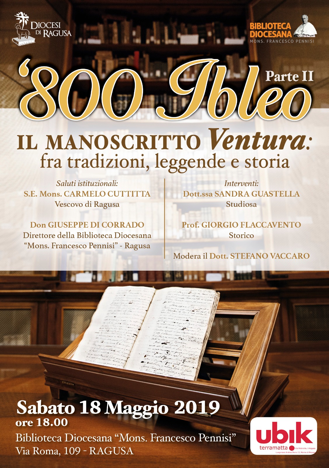 I lavori, che saranno moderati da Stefano Vaccaro, si apriranno con i saluti del vescovo, monsignor Carmelo Cuttitta, e del direttore della Biblioteca diocesana, don Giuseppe Di Corrado. Nella prima parte del convegno, che si è tenuta lo scorso dicembre, la storia della Ragusa dell’Ottocento, con la sua vita sociale, politica, economica e culturale, era stata rivissuta mettendo in parallelo il manoscritto Ventura con le carte della beata Maria Schininà e con l’analisi storica del periodo, grazie ai contributi di Sandra Guastella, Laura Barone e Saro Distefano. «Anche con questo appuntamento – ha spiegato il direttore della Biblioteca diocesana don Giuseppe Di Corrado – vogliamo approfondire le ricerche di un periodo che ha inevitabilmente segnato le sorti della Ragusa che oggi viviamo. Abbiamo avviato un percorso di maggiore coinvolgimento della comunità iblea tutta alla nostra ricca e preziosa collezione e questo convegno ne è una ulteriore occasione».