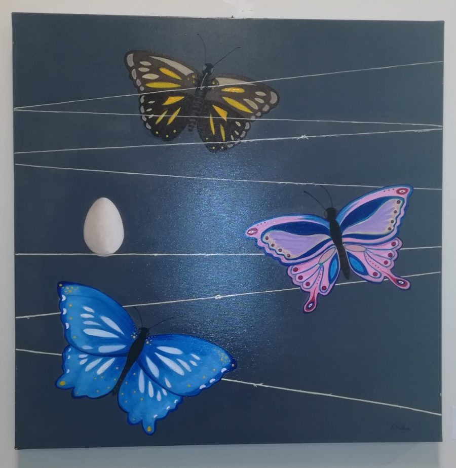 matita che evidenziano il tratto professionale dell’artista. Sono opere che raccontano i problemi inerenti questa terra così povera e le mamme africane che lottano ogni giorno per la sopravvivenza. Nella sala centrale avviene quasi il riscatto della donna: donne che sono riuscite a conquistarsi un pezzo di spazio nell’Universo, sia nel mondo dell’arte che nella vita di tutti i giorni. Qui primeggiano anche le opere con le farfalle, metafora della donna: un pennello che ridà colore ad un’ala sbiadita dal dolore, un uovo che rappresenta la vita, la trasformazione. In un’altra sala altre opere che l’artista ha dipinto negli anni, tema mare e tema natura , con cui ha ricevuto alcuni riconoscimenti e premi. Elvira Salonia dipinge da piccola, la passione l’ha ereditata dal nonno e solo da grande, dopo la maturità classica, si è iscritta all’Accademia di Belle Arti per perfezionare la sua già esperta mano. I suoi colori, molto vivi, sono un segno di speranza per tutte le donne che purtroppo in questi ultimi periodi hanno finito di credere nei loro diritti. E’ una sorta di ricostituzione dell’universo femminile e soprattutto dei diritti delle donne il messaggio che Elvira Salonia vuole portare avanti tramite la sua pittura, una voce che parla al fruitore con ogni singola opera.