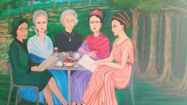 Una personale tutta al femminile quella dell’artista Elvira Salonia in itinere a Palazzo Garofalo fino al 16 giugno. La mostra è stata curata dal critico d’arte Salvatore Parlagreco . Un folto pubblico è intervenuto al vernissage di “Universo femminile”, titolo che l’artista ha voluto dare a questa collettiva e non a caso. Le sale di palazzo Garofalo , infatti, invitano il fruitore ad un percorso ben preciso in cui fa da apripista un’opera in cui sono raffigurate alcune donne della storia, di periodo storico diverso, che sedute ad un tavolo vogliono idealmente parlare dei problemi della donna e dei diritti negati. Fra loro Ipazia d’Alessandria, Frida Kahlo, Rita Levi Montalcini, Olympe De Gouges e Rosa Parks. Un’opera, olio su tela, con i colori della natura che rassicurano l’animo umano. A fianco un’altra opera i cui colori spiegano il significato: sono dei papaveri blu che rappresentano la pace in opposizione a quelli rossi simbolo della Grande guerra. Il percorso ci fa immergere nella realtà delle donne africane , con dei delicati quadri a