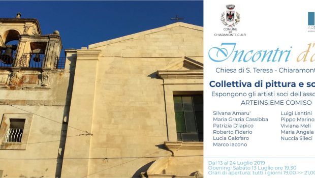 L’ex chiesa di santa Teresa ospiterà, dal 13 al 24 luglio, la mostra “Incontri d’arte”, organizzata da Arteinsieme. La piccola chiesa settecentesca, restaurata di recente ed utilizzata ora come sala espositiva, sarà la sede della nuova collettiva di pittura e scultura di un gruppo di artisti dell’associazione culturale con sede a Comiso (ne fanno parte artisti di vari comuni iblei). Dopo i recenti appuntamenti di Acate (le mostre “Fermentum” e “Scatto d’arte”) e di Ragusa Ibla (l’Antologica di Alfredo Campo, in corso fino al 14 luglio), Arteinsieme propone un nuovo appuntamento, stavolta a Chiaramonte Gulfi, scegliendo proprio il centro storico (l’ex chiesa si trova in corso Umberto, nei pressi della villa comunale).