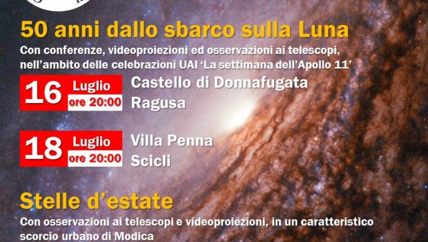 In occasione infatti della celebrazione dei 50 anni dallo sbarco sulla Luna, il CISA vuole rendere omaggio alla missione mettendo a disposizione i propri strumenti per organizzare una serata di osservazione guidata della Luna e delle stelle attraverso i telescopi e con l’assistenza di personale specializzato e l’uso di videoproiettori. Sarà un’occasione per rivivere insieme a quanti interverranno al Castello di Donnafugata quel giorno di 50 anni fa e ripercorrere insieme le tappe fondamentali delle missioni Apollo che portarono l’uomo sulla Luna e rivivere le fasi salienti sull’esplorazione lunare e l’anniversario dell’allunaggio con una prospettiva sulle missioni future.