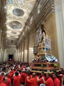 Molto apprezzata, poi, sempre sabato, l’esibizione della fanfara bersaglieri degli Iblei che, dopo aver reso omaggio al monumento ai caduti presso il castello Aragonese, hanno attraversato via San Biagio ed eseguito un breve spettacolo in piazza Fonte Diana. La scalinata della chiesa di San Biagio ha poi fatto da cornice a “Madre Lingua”, uno spettacolo di musica, canto e poesia. La processione con il simulacro si è snodata per le vie principali della città , l’ultimo tratto della processione da piazza Carlo Marx, via Umberto I, piazza Fonte Diana, chiesa Madre, piazza Fonte Diana e rientro nella chiesa di San Biagio. Non ci sono stati i fuochi d’artificio, anche questo per scelta del rettore e del comitato per rendere onore ai bambini di Vittoria: un gesto significativo e positivamente apprezzato.