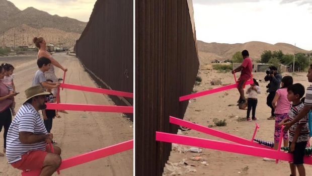 Le altalene che oltrepassano la barriera tra Messico-Usa