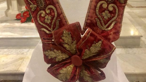 Ora dopo un accurato intervento di restauro conservativo eseguito da Maria Stragapede della ditta Tiraz di Ruvo di Puglia (Bari), grazie a fondi privati, la stola ci svela una storia che fino ad ieri sconoscevamo e che ci riporta indietro di secoli: nel periodo della realizzazione della seconda chiesa, prima del terremoto del 1693. La perfetta vestibilità sulla statua permette di dire che essa fu realizzata in funzione dell’immagine che oggi ancora veneriamo.